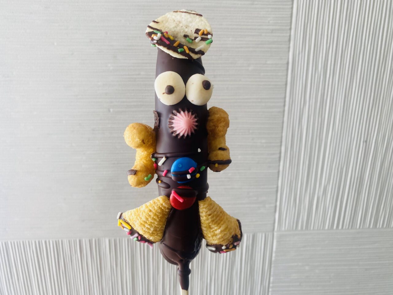 くりっとした目に、こんがり焼けた肌、ラテン系の踊りが始まりそうなこの子たちの正体は「チョコバナナ」! 「ヤオシチ」特製の「チョコバナナ(298円)」で、ひとつひとつお手製なので、みんな顔も動きも少しずつ違うんです。