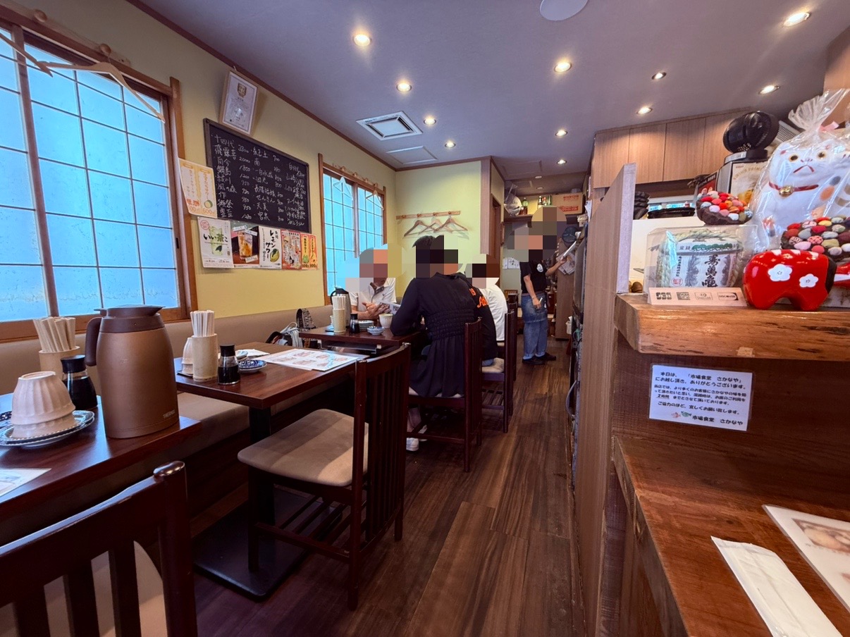 入口を入ると、右手にカウンター、左手にテーブル席、奥にはお座敷がありました。