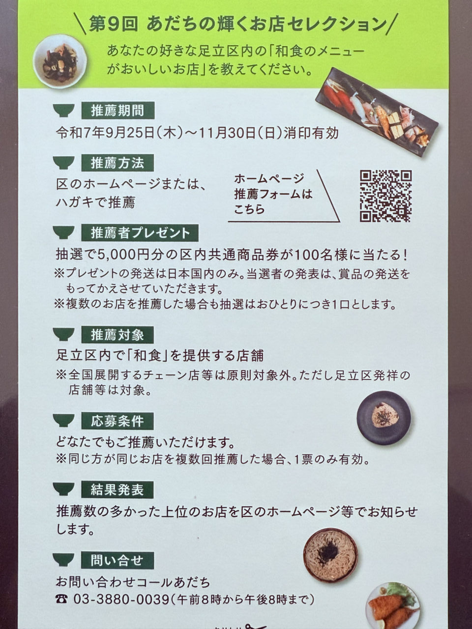 ※オンライン推薦フォームはこちら>第9回 あだちの輝くお店セレクション 推薦フォーム