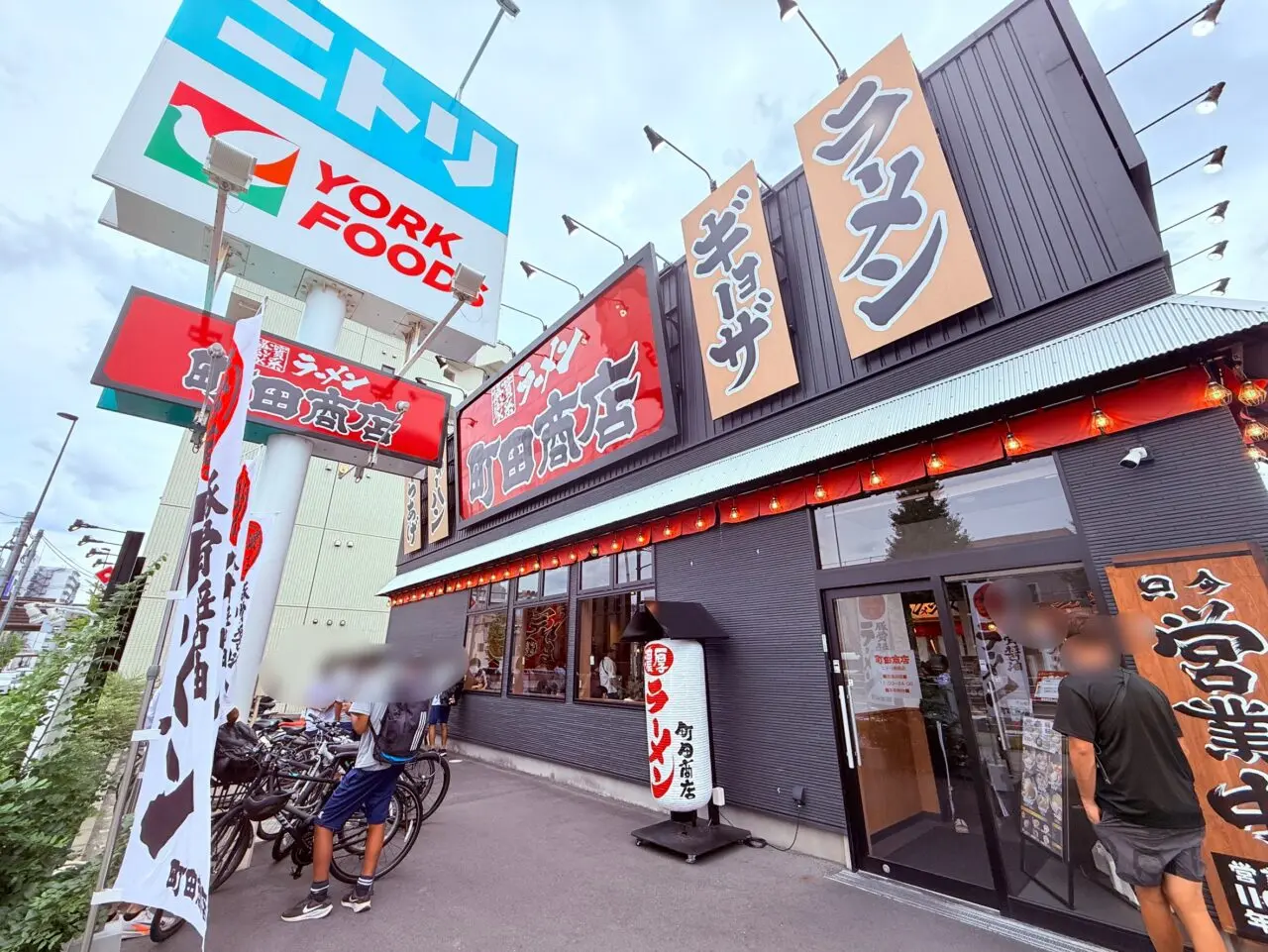 「町田商店 ニトリ梅島店」は、店名の通り「ニトリ」のすぐ隣にあるお店。スーパーマーケット「ヨークフーズ」も併設されているので、買い物帰りにサクッと寄るにはぴったりなんです。広い駐車場もあるので、大量のお買い物も食事も一箇所で済ますことができます。