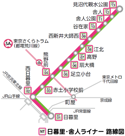 ※日暮里駅前の降車場所については、当日の道路状況等により異なります
