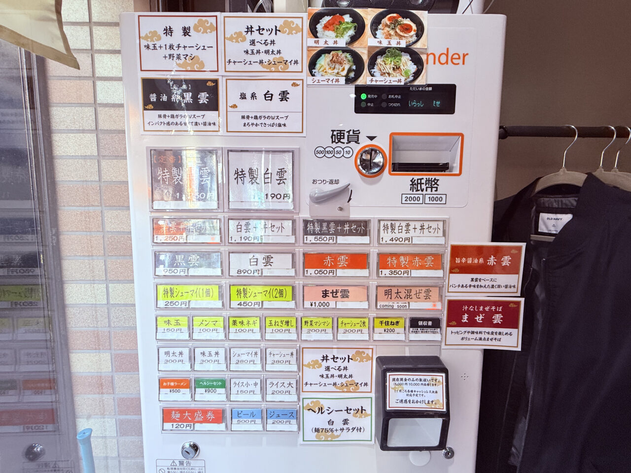 主なメニューは、4種類。まずは味を決めて、そこに具材が多い特製にしてみたり、丼ものやシューマイを追加したりできるようです。