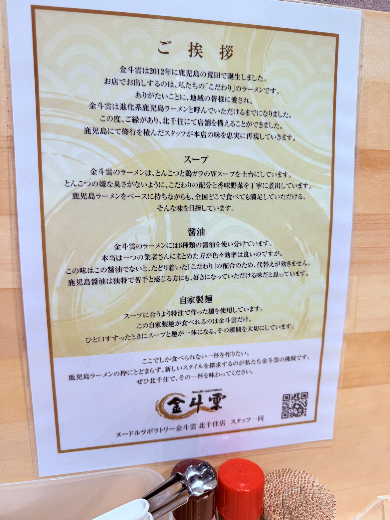 【足立区】進化系鹿児島ラーメンが北千住にやってきた! 千住宿商店街にオープンした「Noodle Laboratory金斗雲」で黒いラーメンを堪能!