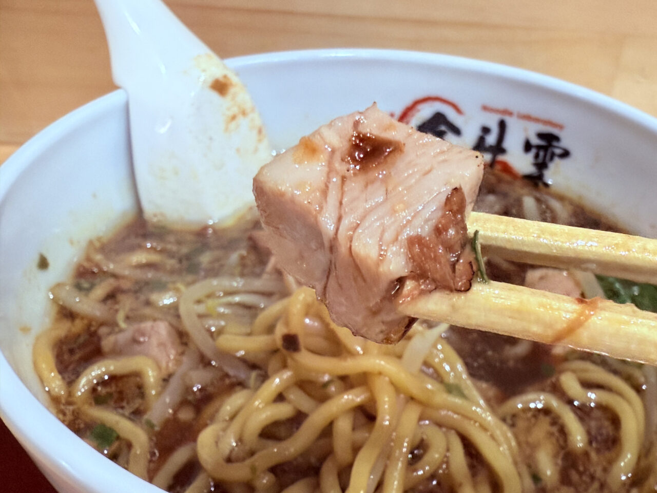 角切りチャーシューの肉感やネギ、もやしのシャキシャキ感で食感の変化も楽しみながら、あっという間に完食してしまいました。