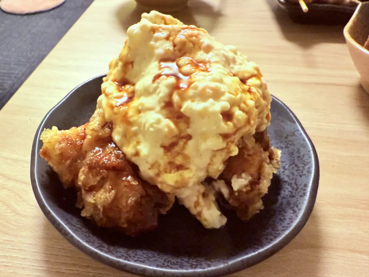 他にも何品か注文し、どれもとってもおいしくいただきました。「自家製タルタル」がのった「タルタルチキンハーフ(439円)」は子供にも大人気で、ライスの上にどどんと乗せてがっついていました。衣が軽めでサクサクなのも人気のポイントです。